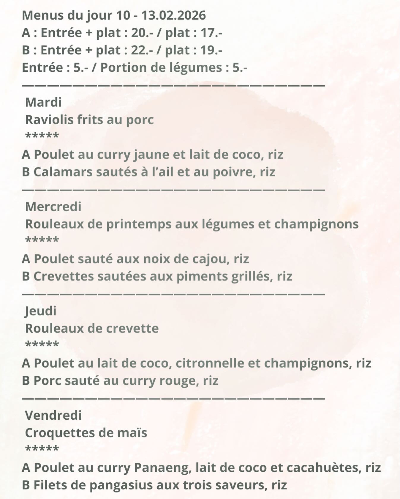 Le rêve d'ouvrir un restaurant est devenu réalité en 2002, lorsque notre premier restaurant a ouvert ses portes. Depuis 2013, nous sommes installés à Valangin sous le nom de Sukhothai, ce qui veut dire l'aube du bonheur. Nous sommes fiers de notre attention à la présentation et à la qualité des produits que nous utilisons. Chaque plat de notre menu est soigneusement préparé pour éveiller vos papilles.